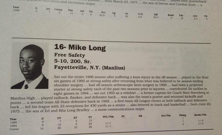 Throughout my college football career, pain wasn’t just something that popped up in my life, it was more like a companion. My journey as a student-athlete at the University of Maine from 93-98 was marked by a series of brutal, character-shaping injuries that tested more than just my body; they tested my spirit. My freshman year, I suffered a hairline fracture to my jaw from a full-contact tackling drill which was my introduction to a life of physical suffering on a new level. After starting my very first college football game, I was forced to redshirt after getting my jaw wired shut after my Bryan Hawkes cracked me with his helmet during form tackling drills. Eventually, I returned after rehab ready for the next season, hungry to prove myself. Sophomore year, I faced chronic shoulder stingers caused by a narrow spinal column that would flare up after the relentless impacts of the game. Still, I pressed on. By my redshirt sophomore year, the consequences of neglecting an old high school injury caught up with me, as a left shoulder subluxation led to a major surgery. Even then, I rehabbed fiercely, came back early, and balled out, playing 6 of 11 games and putting together one of my best seasons. But it was my senior year that broke me. While playing basketball before spring ball with some of my teammates, I tore my ACL. I tried to power through without surgery, but almost every time I tried to moved laterally, my knee buckled. Eventually, I had no choice, and I went under the knife, rehabbed, and tried to come back again, but this time, my knee wouldn’t hold. Fall of 1996 was the end of football for me. Letting go wasn’t just painful, it was disorienting because I couldn’t be with my first love anymore. I had to rediscover who I was without the game. Enter my spiritual quest.