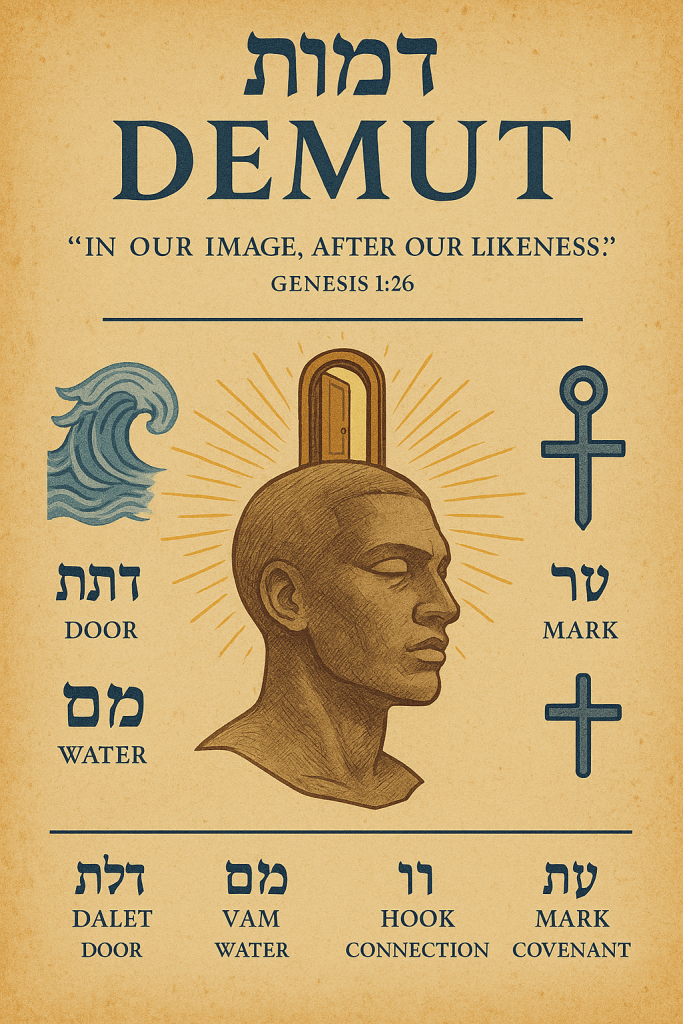 Breaking down the word demut, we see that it is composed of dalet (door), mem (water or flow), vav (hook or connection), and tav (mark or covenant). This paints the picture of an idea as a doorway that flows from the mind of the Most High, connects us to Him, and marks us with purpose. Ideas are not just thoughts; they are the channels through which divine intention enters the physical world.