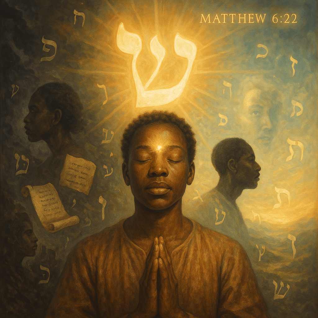 As we’ve seen, the Hebrew word for servant has encoded in its letters the very architecture of this mystery. The first letter, Ayin (ע), means eye, a symbol of perception, inner sight, and awakened consciousness. In the realm of true servitude, this is not about blindness or subjugation, but about seeing clearly with the inner eye, the ayin panim, the face within the face. The servant’s journey begins with vision, because perception determines posture; if the eye is clouded by pride, fear, or distraction, service becomes performative and hollow. But when the eye is made single, focused, and undivided, one begins to perceive the will of the Master not as tyranny, but as instruction, correction, and alignment. This inner seeing is the gateway to transfiguration, the moment when the lower nature is illuminated by the higher light, and the one who once served out of obligation now serves from joy, devotion, and trust. Self-mastery depends on this inner sight, because one cannot govern what one does not recognize. Ayin, therefore, opens the path to wisdom, for it is the ability to discern not only what is seen, but what is unseen; to navigate the house and the door with intention. As Mashiyach tells us in Matthew 6:22,